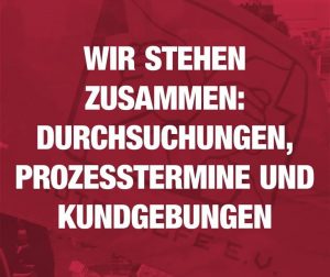 Wir aber lassen unsere Genoss*innen nicht alleine. Wir überlassen sie nicht der Klassenjustiz, wir stehen an ihrer Seite und laden daher alle, die mit uns an ihrer Seite stehen wollen zu den Kundgebungen vor den Prozessen ein: