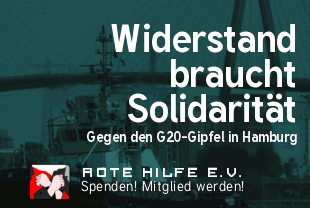 Der Ermittlungsausschuss und die Rote Hilfe e.V. stellen sich auf eine große Zahl an Fest- & Ingewahrsamnahmen, sowie Strafverfahren und Verurteilungen während des Gipfels ein. Damit die Betroffenen mit finanziellen Folgen nicht alleine gelassen werden sind wir alle gefordert diese Kosten solidarisch zu teilen! Dafür benötigen wir dringend eure Unterstützung!