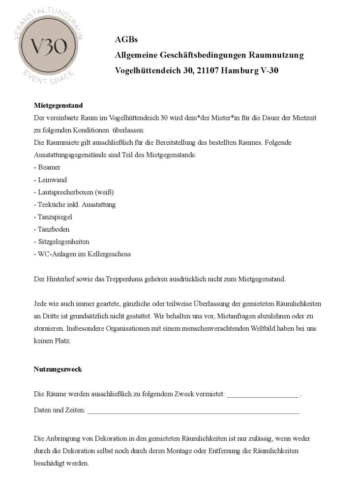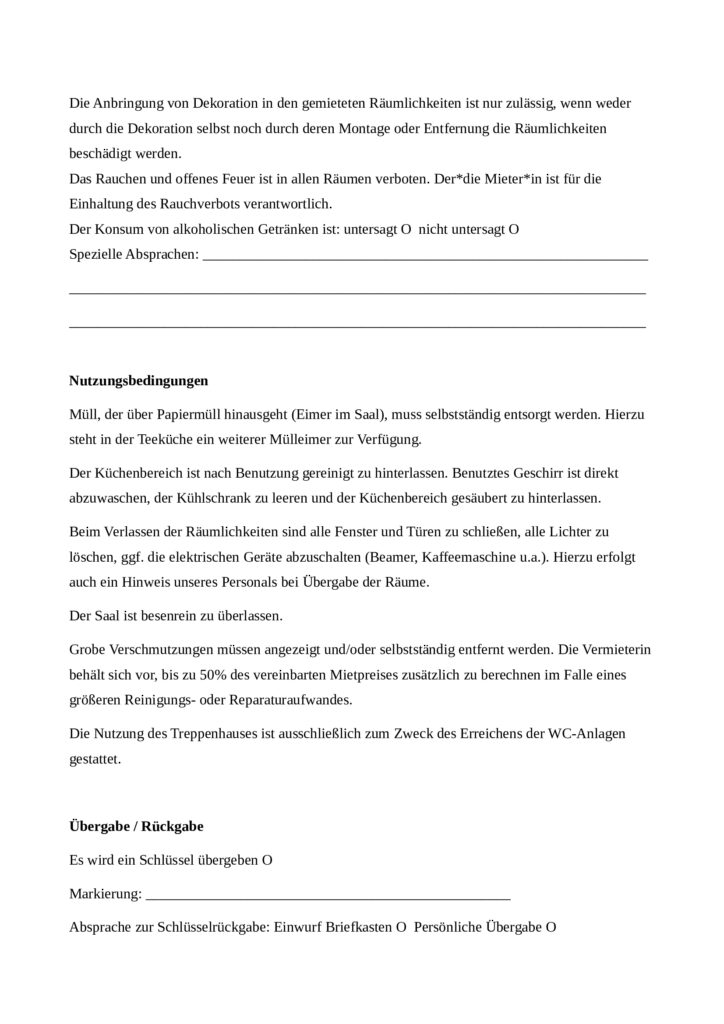Raumbuchung (MUSTER) + AGBs: