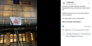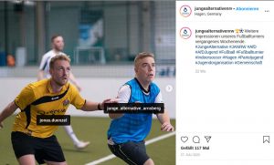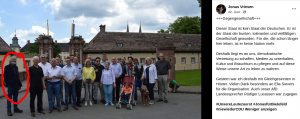 Schon in unserem ersten Text haben wir auf den Stammtisch der JA Bielefeld hingewiesen. Vriesen bezeichnete den Stammtisch in einem facebook-Post vom 05.04.2020 als „Beitrag zum Aufbau eines widerständigen Milieus“i. Dieses widerständige Milieu nach Jonas Vriesens Fasson setzt sich aus neben anderen JAlern und AfDlern auch aus ehemaligen Mitgliedern der Identitären Bewegung (IB) zusammen. So besuchte am 01.11.2020 auch Alexander Lehmann aus Witten den Stammtisch der JA Bielefeld. Alexander Lehmann lebt seit 2019 in Witten und ist seither bei der AfD Ennepe-Ruhr-Kreis aktiv. Bis 2016 bewegte sich Lehmann im Dunstkreis der neonazistischen Parteien NPD und Die Rechte, so besuchte er die NPD-Demo am 01.05.2016 in Bochum und das neonazistische Großevent „Tag der deutschen Zukunft“ 2016 in Dortmund.