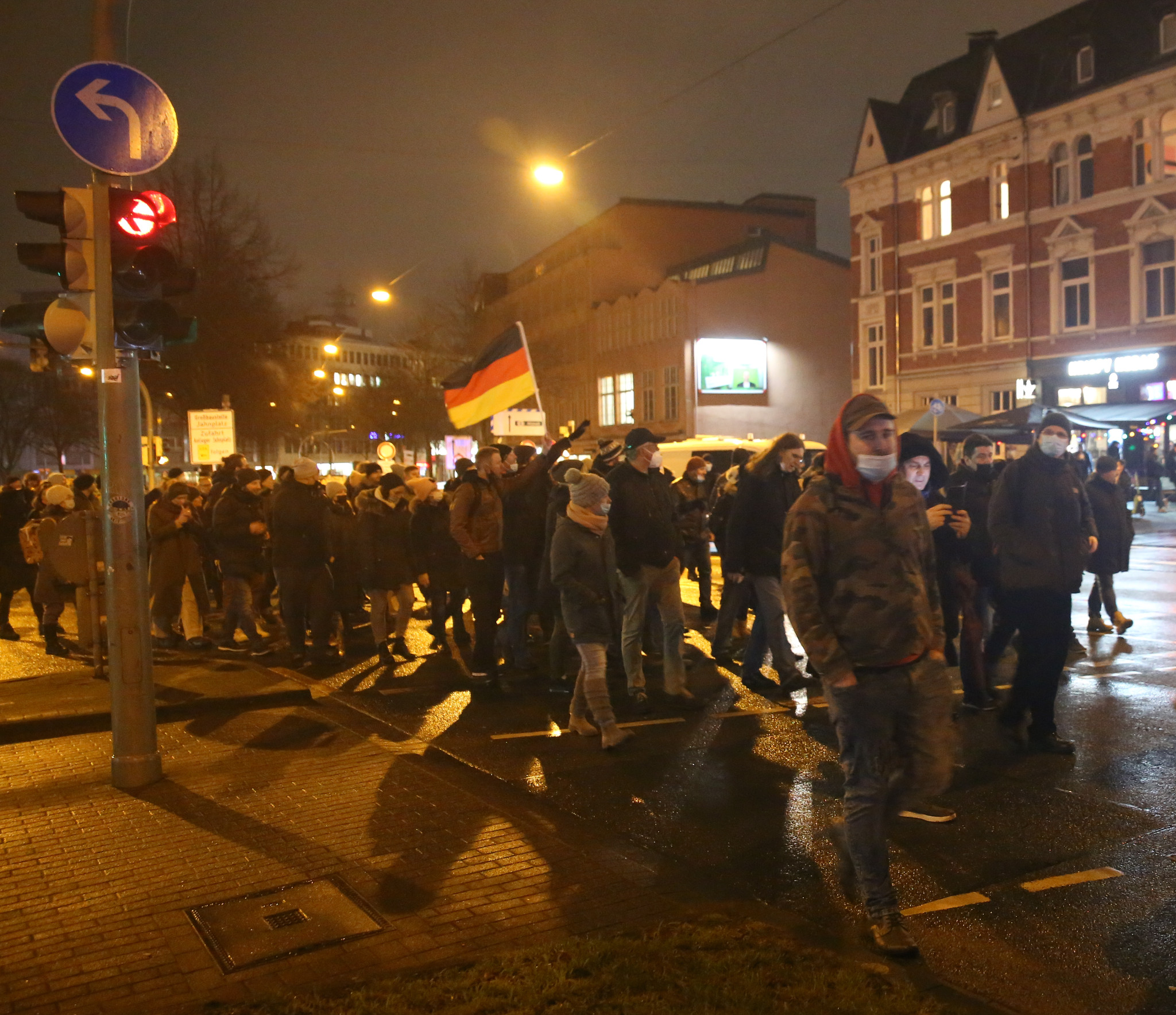 Auch am 21.01.22 beteiligten sich bekannte Personen der rechten Parteienlandschaft und der neonazistischen Szene am Demonstrationsgeschehen in Bielefeld. Tim Marvin Braungart von der nationalistischen Jungen Alternative lief in dem Zug ausgehend von der Kunsthalle mit JA-Fahne mit. Markus Mittwoch, Mitglied der CDU Bielefeld, beteiligte sich an dem Kesselbrink-Zug.