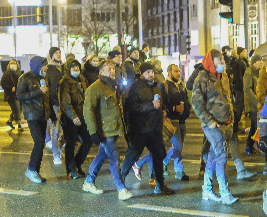 Auch Neonazi und Ex-Reservist Heinz Kriegel nahm mit 3 weiteren Personen, darunter Neonazi und Hooligan Dennis Seibert, an der Demo am 21.01.22 teil. Kriegel und Seibert hatten im Oktober 2020 gemeinsam mit dem damaligen Vorsitzenden der Bielefelder Reservistenkameradschaft RK36 Alt-Bielefeld Michael Reinert eine Demonstration der neonazistischen Kleintspartei „Der dritte Weg“ in Berlin besucht. Seibert und Kriegel sind schon wiederholt bei den Demos von „Bielefeld steht auf“ aufgefallen. Am 17.12.21 beteiligte sich Seibert an einem gewaltsamen Durchbruch am Bielefelder Rathaus.