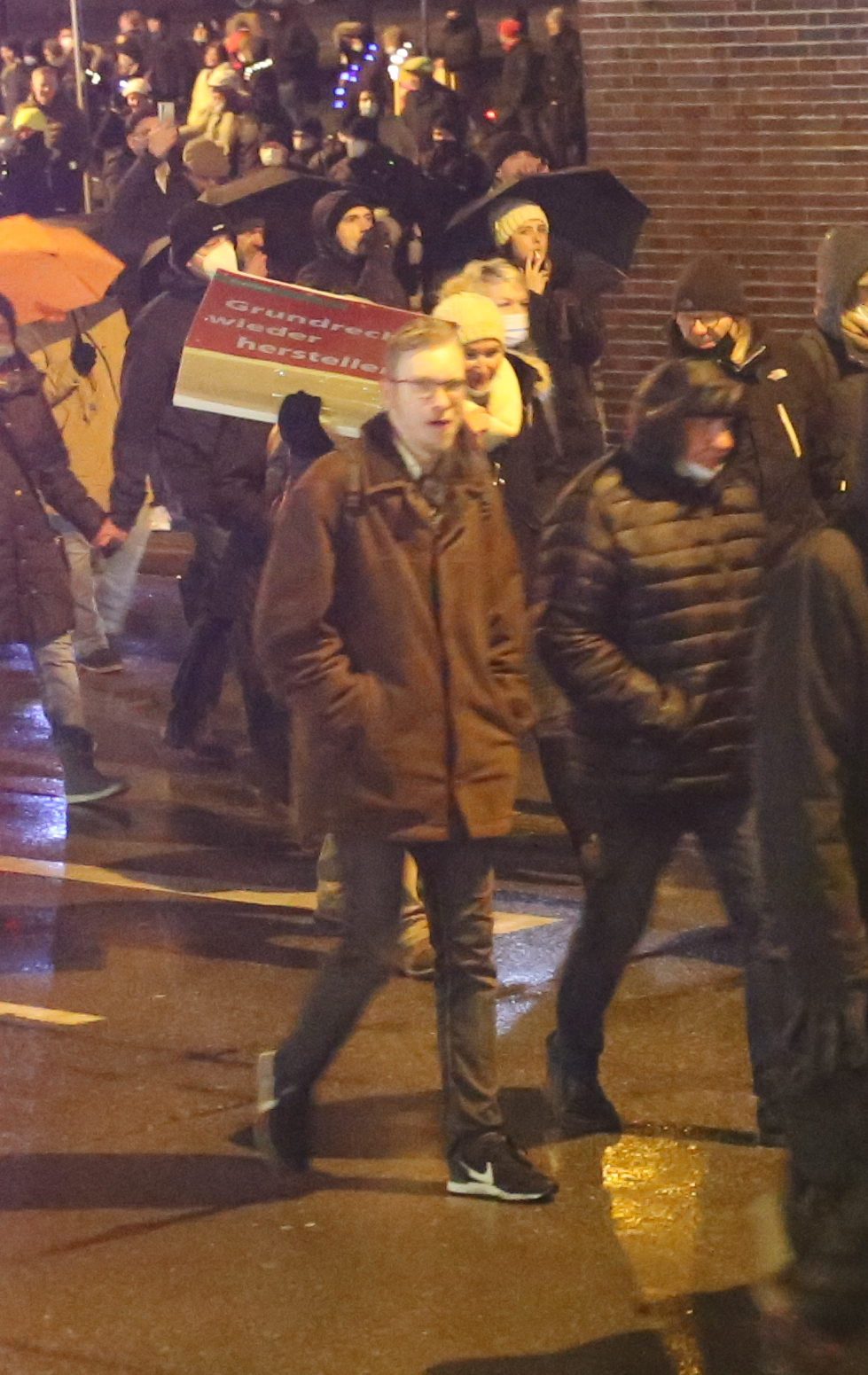 An den regionalen Großdemos der verschwörungsideologischen Szene haben in den letzten Wochen immer auch bekannte Personen der rechten Szene teilgenommen – ob in Bielefeld, Paderborn oder auch Lemgo. So auch am 04.02.22 in Bielefeld. Von der Neonazi-Kleinstpartei „Die Rechte“ lief der Bielefelder Tim Sauer mit. Florian Schürfeld, Burschenschafter bei der Normannia Nibelungen und Aktivist der Identitären Bewegung, nahm mit drei weiteren Personen an der Demo von „Bielefeld steht auf“ teil.