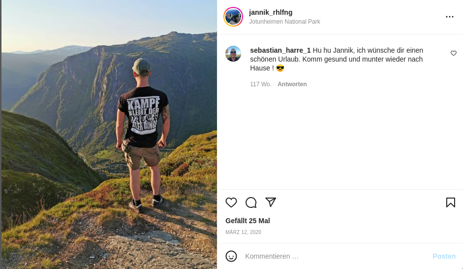 Winter ist ein mehrfach verurteilter gewaltbereiter Neonazi, der für den Aufbau der Neonazi-Szene in OWL der letzten zwanzig Jahre eine zentrale Rolle spielt. Dirk Fasold, ehemals Führer der Sektion Hermannsland der verbotenen Organisation Blood & Honour, kommentiert die Bilder anerkennend „Killer !!!“ und „Maschine !!!“ (siehe Screenshots unten). Sebastian Harre, ebenfalls Teil der Neonazi-Gruppe „Mindener Jungs“, wünscht Rohlfing einen schönen Urlaub (siehe Screenshot). Auch Michael Holland gefallen Rohlfings Bilder. Die Gruppe „Mindener Jungs“ organisiert seit 2018 Neonazi-Konzerte in einer alten Gärtnerei in Veltheim, zuletzt im Mai 2022 mit der Band Oidoxie. Oidoxie gilt als das musikalische Aushängeschild von Combat 18, einer militanten Gruppierung des Blood & Honour – Netzwerks.