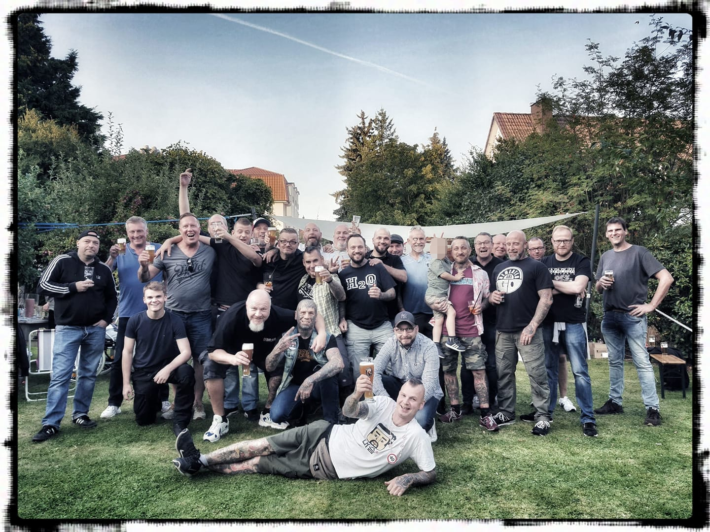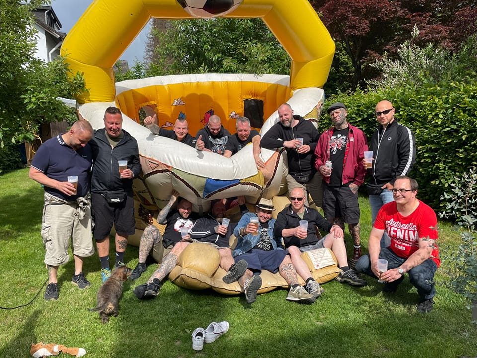 Die Bilder privater Partys bei dem langjährig aktiven Neonazi Dirk Stranghöner aus den Jahren 2021 und 2022 zeigen beispielhaft den Fortbestand der sozialen Bande der Neonazis. Und sie belegen die guten Kontakte der Fallobst-Mitglieder Michael „Onkel Heini“ Heyn, Lars Feldbusch und Thomas Zimmer in die ostwestfälische Neonazi-Szene. Ein GruppMai 2020, Jens Niehoff kommentiert Neonazi-Geburtstagsfeier, v.l.n.r.: Marucs Winter, unbek., Magnus Brandenburg, Michael Sundermann, Helge Broder, unbek. / unten Dirk Stranghönerenbild aus dem September 2021 zeigt Jan Weißberg vorne liegend, dahinter finden sich neben bekannten Neonazis wie Dirk Stranghöner, Maurice Quakernack, Andreas Gaus, Sven Göhner, Michael Rose und Magnus Brandenburg auch die Fallobst-Mitglieder Michael Heyn, Thomas Zimmer und Lars Feldbusch. Ein Gruppenbild aus dem Jahr 2022 zeigt die ostwestfälischen Neonazi-Kader Marcus Winter (Mindener Jungs) und Bernd Stehmann gemeinsam mit Thomas Zimmer und Jan Weißberg.