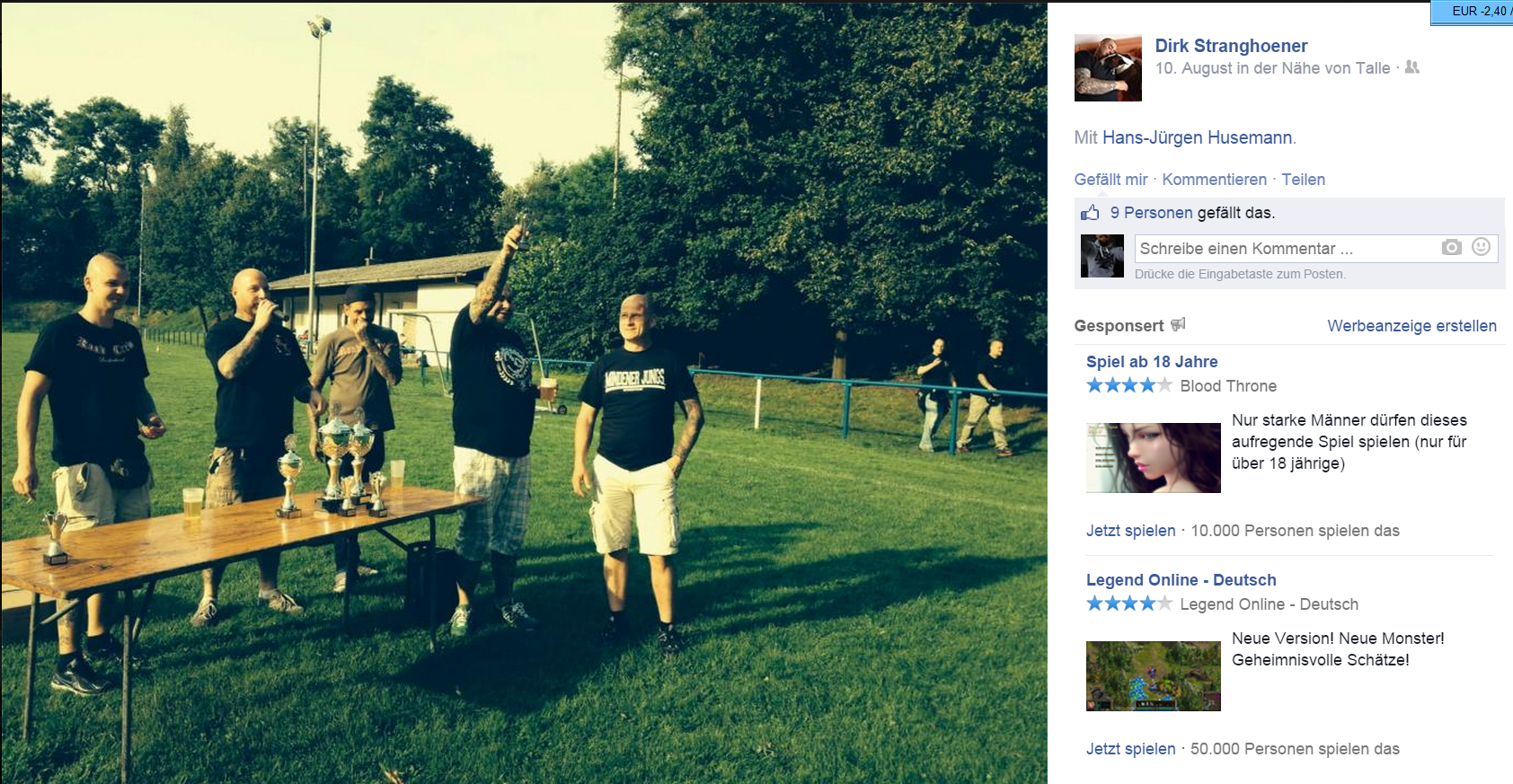 Wanderfotos auf facebook zeigen Mittwoch zusammen mit dem Neonazi Dirk Stranghöner aus dem Kreis Lippe. Stranghöner ist seit mehr als 25 Jahren als Neonazi bekannt und aktiv. Er war unter anderem Teil der neonazistischen Kameradschaft Bielefeld sowie der Road Crew OWL. Wenn Stranghöner mit anderen bekannten Neonazis wie Marcus Winter (Mindener Jungs), Michael Sundermann und Jan Weißberg zum Vatertagsausflug loszieht, gefällt das Markus Mittwoch auf facebook.