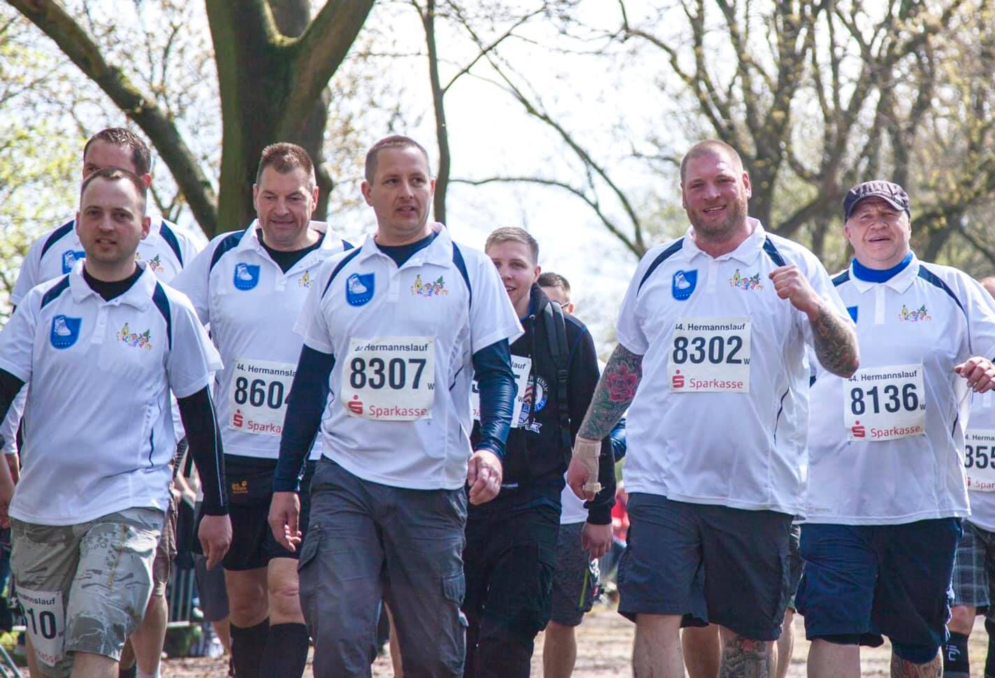 Jedes Jahr im Mai zieht der Hermannslauf Tausende Läufer*innen und Wander*innen nach Ostwestfalen, die sich der Herausforderung der 31-km-langen Strecke zwischen Detmold und Bielefeld stellen wollen. Über 6000 Läufer*innen und mehr als 1000 Wander*innen nahmen allein im Jahr 2023 teil. Die Teilnehmer*innen stammen aus verschiedenen Städten und Regionen, sie nehmen allein oder als Team teil. Viele Teams stellen ihre Teilnahme unter ein wohltätiges Motto und sammeln Spenden für entsprechende Organisationen oder Vereine. So auch das Team Fallobst. 2014 startete das Team Fallobst zum ersten Mal beim Hermannslauf. Im Magazin Supporter (Ausgabe 34, herausgegeben durch den Arminia Supporters Club) wird das Team als „verschworener Haufen um die Arminen Michael ‚Onkel Heini‘ Heyn und Marcel Lossie“ vorgestellt. Die Idee für das Team hatte nach Eigenangaben Michael Heyn, hinzugekommen seien „ein paar Leute aus der Bielefelder Fanszene“. Gemeinsam mit dem bekannten Bielefelder Unternehmer Marcel Lossie (u.a. Gin Lossie, Rübe Vodka, Fast4Ward GmbH, Lokschuppen), der ebenfalls der Fanszene von Arminia Bielefeld angehört, sei dann die Idee entstanden, für das Projekt Fruchtalarm Spenden zu sammeln. Das Projekt Fruchtalarm hat sich zum Ziel gesetzt, den Alltag von Kindern und Jugendlichen auf Krebsstationen durch frisch gemixte Fruchtcocktails aufzuheitern. Gegründet wurde das Projekt 2010 von Marcel Lossie, seit 2012 ist die von Laer Stiftung für das Projekt verantwortlich. Ein nobles Spendenziel. Jedoch fällt bei näherer Betrachtung des Team Fallobst auf, dass dieser „verschworene Haufen“ auch aus rechten Althooligans und Neonazis besteht. In Zeiten des zunehmenden Rechtsrucks, des Erstarkens nationalistischer und profaschistischer Kräfte wie der AfD muss sich eine Stadtgesellschaft fragen, ob sie den offenen Schulterschluss von gewaltbereiten Hools und Neonazis mit Unternehmern und Handwerkern im Team Fallobst in ihrer Mitte dulden will, egal unter welchem wohltätigen Deckmantel sie laufen. Zeit für einen genaueren Blick auf das Team Fallobst.