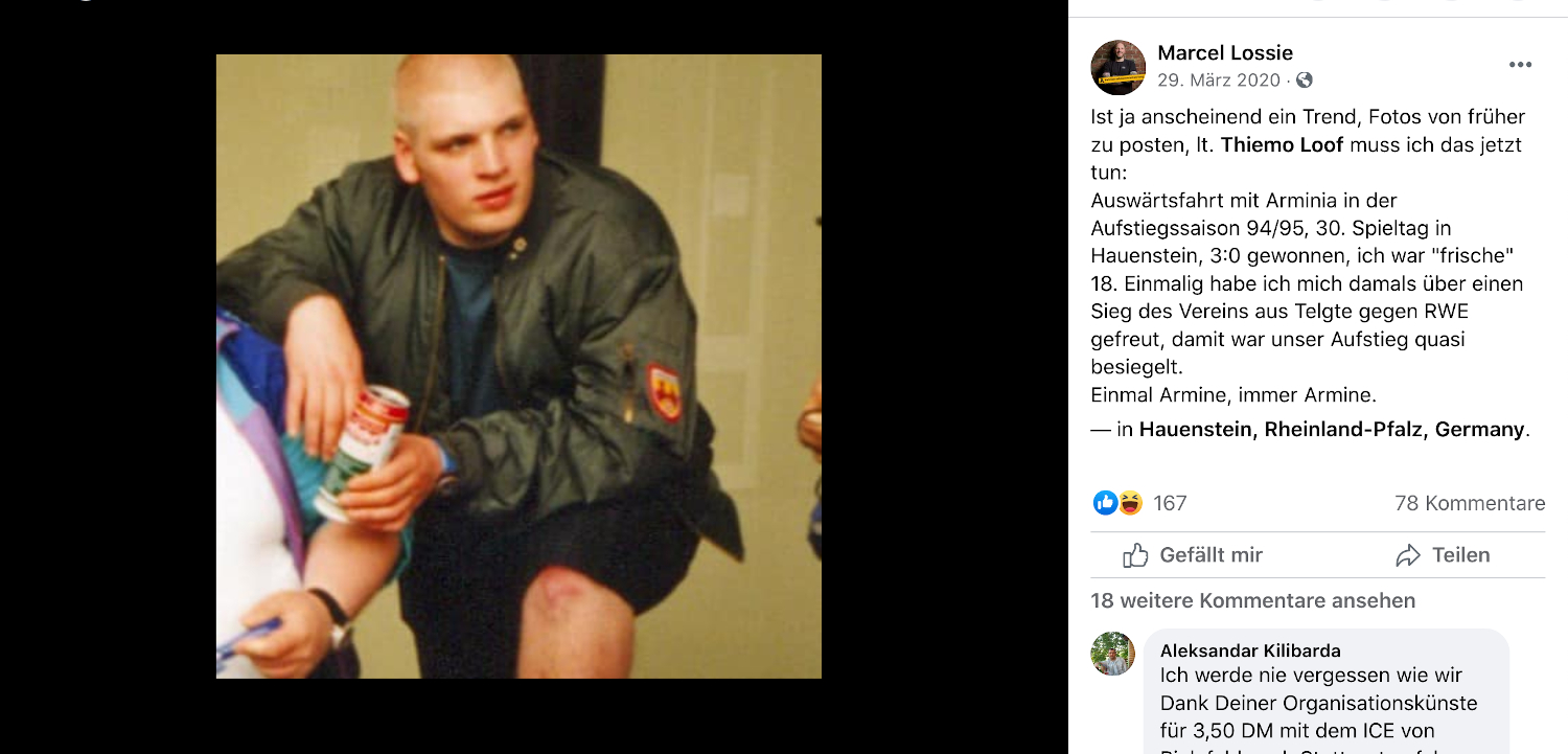 Das Team Fallobst besteht seit der Gründung 2014 zu einem nicht unerheblichen Anteil aus Personen aus dem (ehemaligen) rechten Hooliganspektrum sowie verschiedenen Personen aus dem neonazistischen Milieu. Die Personen, die wir in unserem Text näher betrachtet haben, sind durch ihre Organisierungen, Ideologie und ihr Handeln präsent und erwähnenswert. Gewaltbereitschaft, zur Schau gestellte Männlichkeitsinszenierung und Nationalismus bilden in dieser sozialen Gruppe das Bindeglied, das den Jahrzehnte währenden Männerfreundschaften zugrunde liegt. Der Teamkapitän Michael Heyn, als Alt-Hooligan vor einigen Jahren noch durch einen rassistischen Angriff in Erscheinung getreten, ist ein perfektes Sinnbild dafür. Die gealterten Hooligans und Neonazis sind mittlerweile in der bürgerlichen Mitte angekommen. Sie haben Familien, gehen Arbeit nach und nehmen am Stadtleben teil. Der Veranstaltungskaufmann und Spirituosenproduzent Marcel Lossie steht in der öffentlichen Stadtwahrnehmung am meisten im Fokus, sei es als Eventmanager im Lokschuppen, Gin-Verkäufer oder als Gesicht von Fruchtalarm. 2021 beschwerte sich Lossie öffentlichkeitswirksam darüber, dass junge Menschen in der Bielefelder Innenstadt Alkohol tranken, pöbelten und Musik hörten – ein Vorwurf, der verwundern kann, wenn man bedenkt, in welcher Regelmäßigkeit (von Lossie mehr als wohlwollend wahrgenommen) Massen Alkohol trinkender junger und auch nicht mehr junger Menschen an Arminia-Spieltagen durch Bielefeld ziehen. Oder auf den Straßen vorglüht auf dem Weg zu Lossies Oktoberfest im Lokschuppen. Auf Lossies (ziemlich überzogene) Kritik folgten prompt Einladungen des Oberbürgermeisters und anderer führender Politiker*innen aus der Stadt. Er ist eine Person mit Einfluss und gewisser Prominenz, dies spiegelt sich auch in der Berichterstattung lokaler Medien zu der Laufgruppe Team Fallobst. Von Gewaltverherrlichung und rechten Freunden liest man in den Artikeln nichts. So strahlt der karikative Zweck der Laufgruppe auch ein positives Licht auf die anderen Mitglieder. Diverse Mitglieder des Team Fallobst führen als Handwerker ihre eigenen Betriebe, zum Beispiel Markus Mittwoch (Malermeister Mittwoch), Andreas Jäger (Dach Jäger) oder auch Jens Niehoff (Jens Niehoff Zimmerei & Bedachung). Und unterhalten privat Kontakte zu Neonazis.