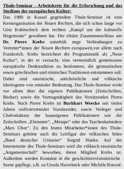 Thule-Seminar: https://www.lotta-magazin.de/ausgabe/64/was-ist-eigentlich-aus-dem-thule-seminar-geworden