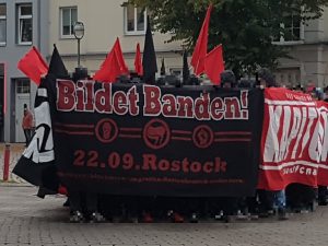 Am heutigen Freitagabend haben sich 400 Antifaschist*innen zu einer Vorabenddemonstration durch die Rostocker Innenstadt zusammengefunden. Ziel war es auf rechte und neonazistische Strukturen aufmerksam zu machen.