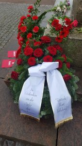 Anlässlich des Gedenktages für die Opfer des Nationalsozialismus trafen sich am Sonntag, den 27.1.2019, in Rostock zahlreiche Antifaschist*innen zum antifaschistischen Gedenkspaziergang. Gemeinsam wurde vom Doberaner Platz zum Denkmal „Für die Opfer des Faschismus“ im Rosengarten spaziert. Unterwegs wurden an mehreren Stolpersteinen Blumen niedergelegt. Im Rosengarten fand im Anschluss die Gedenkveranstaltung des VVN-BdA statt. Nach dem Niederlegen von Blumen und Gebinden beendete ein Genosse unserer Struktur das Gedenken mit einer emotionalen und kämpferischen Rede vor rund 80 Menschen.