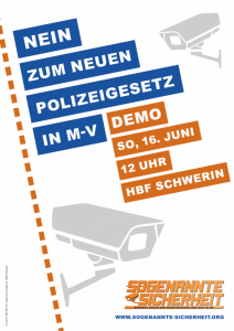 Wie in vielen anderen Bundesländern soll nun auch in Mecklenburg-Vorpommern das Polizeigesetz verschärft werden. Die Tendenz geht zur Totalüberwachung auf Kosten unserer Grundrechte. So soll in Zukunft die Eingriffsschwelle für die Polizei drastisch gesenkt werden, außerdem dürfen Maßnahmen wie z.B. Wohnraum- und Telekommunikationsüberwachung ergriffen werden, ohne dass eine Straftat passiert ist.