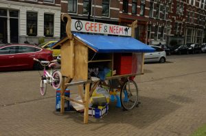 Heeft u bruikbare spullen die u niet meer gebruikt? U kunt hier een ander blij mee maken. De Geef & Neemkar staat op het Pijnackerplein. Wijk ‘t Oude Noorden Rotterdam.