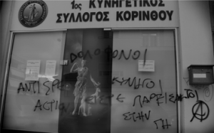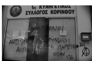 Έτσι, αποφασίσαμε να πραγματοποιήσουμε παρέμβαση στον κυνηγετικό σύλλογο Κορίνθου και να γράψουμε “Δολοφόνοι κυνηγοί είστε παρείσακτοι στην Γη”
