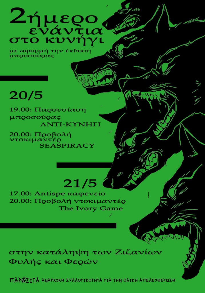 19.00: Παρουσίαση μπροσούρας ΑΝΤΙ-ΚΥΝΗΓΙ