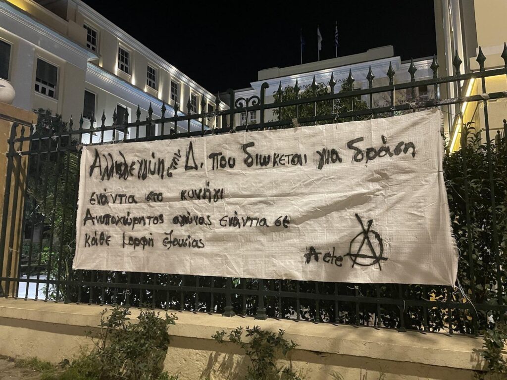 Σε αλληλεγγύη στην συντρόφισσα αναρτήσαμε πανό στην AΣΟΕΕ.