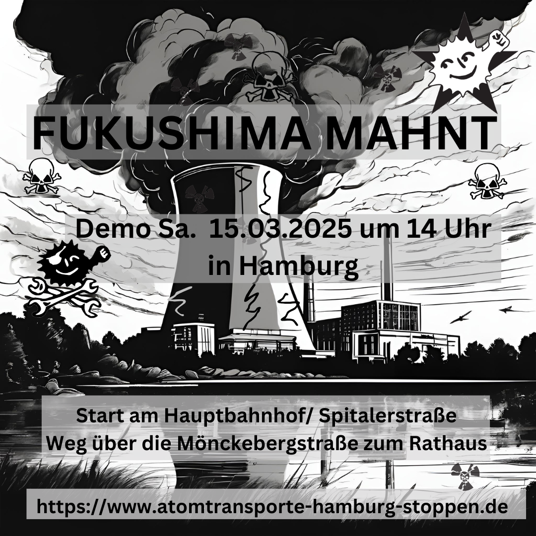 Demo Sa. 15.03.2025 – 14 Uhr Am 11. März 2011 geschah der dreifache GAU in dem Atomkraftwerk Fukushima.
