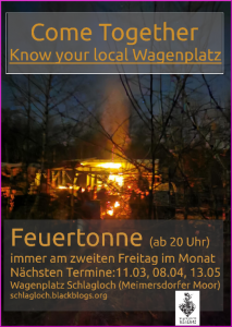 Kommt vorbei und lernt den Wagenplatz Schlagloch und unseren Kampf für ein unkommerzielles Wohn-und Kulturprojekt kennen!