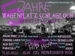 Unsere seit 6 Jahren bestehende Besetzung für einen dauerhaften Wagenplatz in Kiel ist für uns jedoch keine Insel, wir sehen uns im Zusammenhang mit anderen sozialen Kämpfen innerhalb und außerhalb von Kiel. Wir kämpfen für eine lebenswerte Stadt für alle! Einer am Markt und an profitorientierten Stadtentwicklung erteilen wir weiter eine Absage.Diese entspricht unserer Vision, städtischen Wohn- und Lebensraum mit kollektiver und persönlicher Freiheit zu schaffen nicht, sei es durch die Illegalisierung vom alternativen Wohnformen wie unserer, das Schuften für zu teure Mieten und das Fehlen von Wohnraum sowie unnötige Millioenprojekte um Kiel im kapiatlistischen