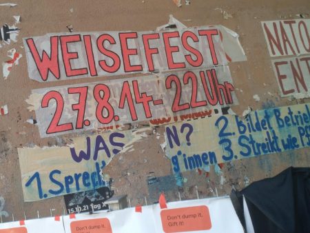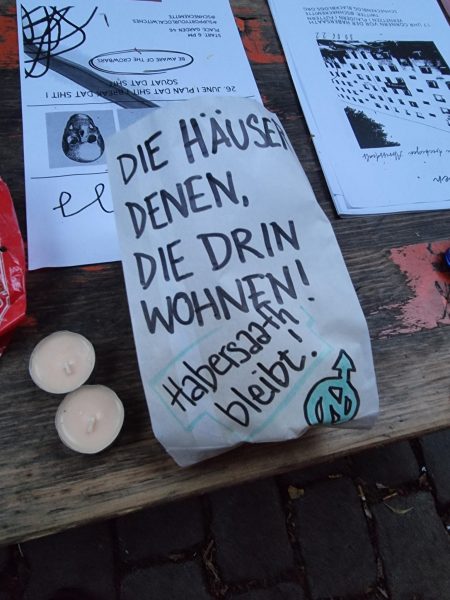 AM 27.08.22 waren wir von ca. 16-22 auf dem Weisestraßenfest in Neukölln. Endlich mal was schönes. Unser erster Stand! Und tatsächlich nutzten die Besucher*innen die Chance um mit uns ins Gespräch zu kommen oder ihre Solidarität mit den neuen Bewohner*innen auszudrücken. Für Selberverwaltung, gegen Fremdbestimmung!