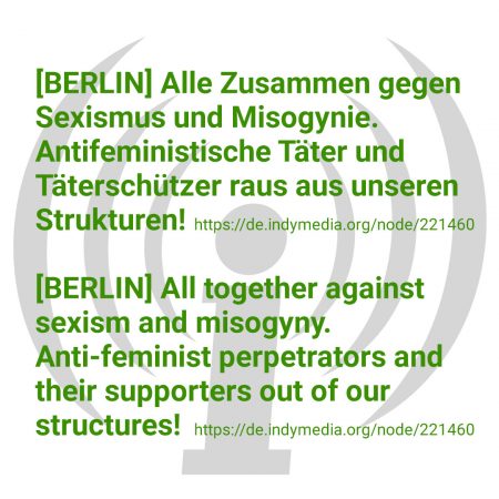 [BERLIN] All together against sexism and misogyny. Anti-feminist perpetrators and their supporters out of our structures!