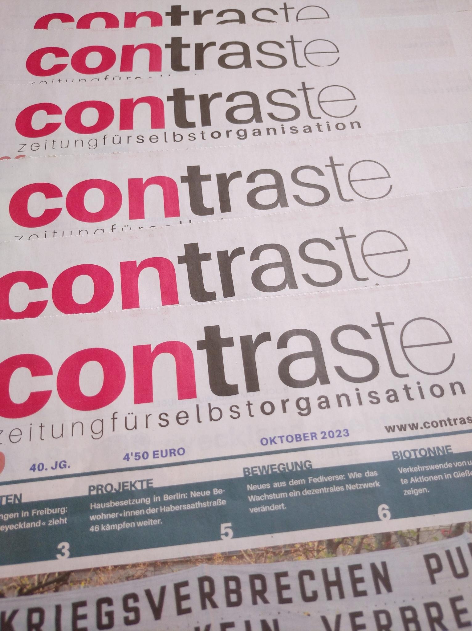 Nach unserem Radiobeitrag im Sphere.Radio hatten wir nun erneut die Möglichkeit unsere Perspektive zu veröffentlichen: Im Contraste der Zeitung für Selbstorganisation.