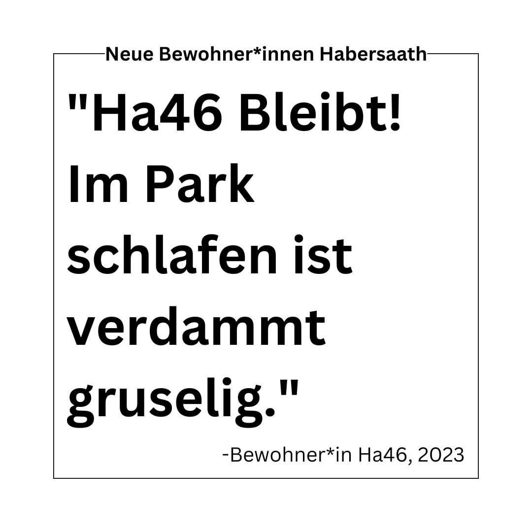 Continue reading „HA46 UNDER CONSTRUCTION“Hier sind ein paar gesammelte Zitate unterschiedlicher Bewohner*innen, die sich für den Erhalt des Gebäudes UND ihren Verbleib darin aussprechen.