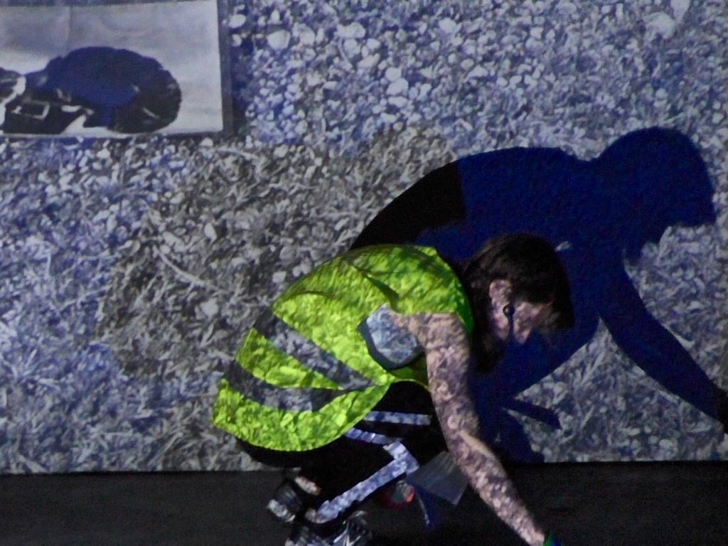Subsequently, the figure aims to perform against pharmaceutical substances and prepare against a neoliberal take-over of their movements, lingering between the roles of researcher, scientist, athlete, pharmacist, patient, woman.