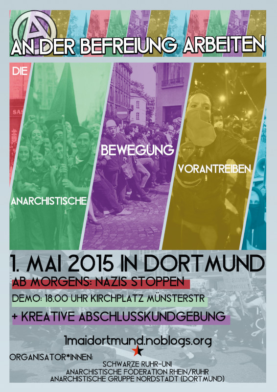 Deshalb rufen wir unter dem Motto “An der Befreiung arbeiten! Die Anarchistische Bewegung vorantreiben!“ zur 1. Mai Demonstration am Münsterplatz in Dortmund um 18Uhr auf.