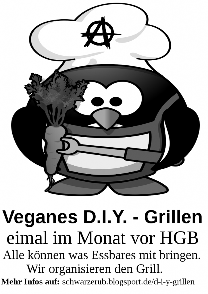Holt die Grillzangen raus, packt die schwarzen Flaggen ein, bereitet die Gemüsespieße vor und mariniert die Tofuschnitzel! Wir ergrillen uns den Campus!