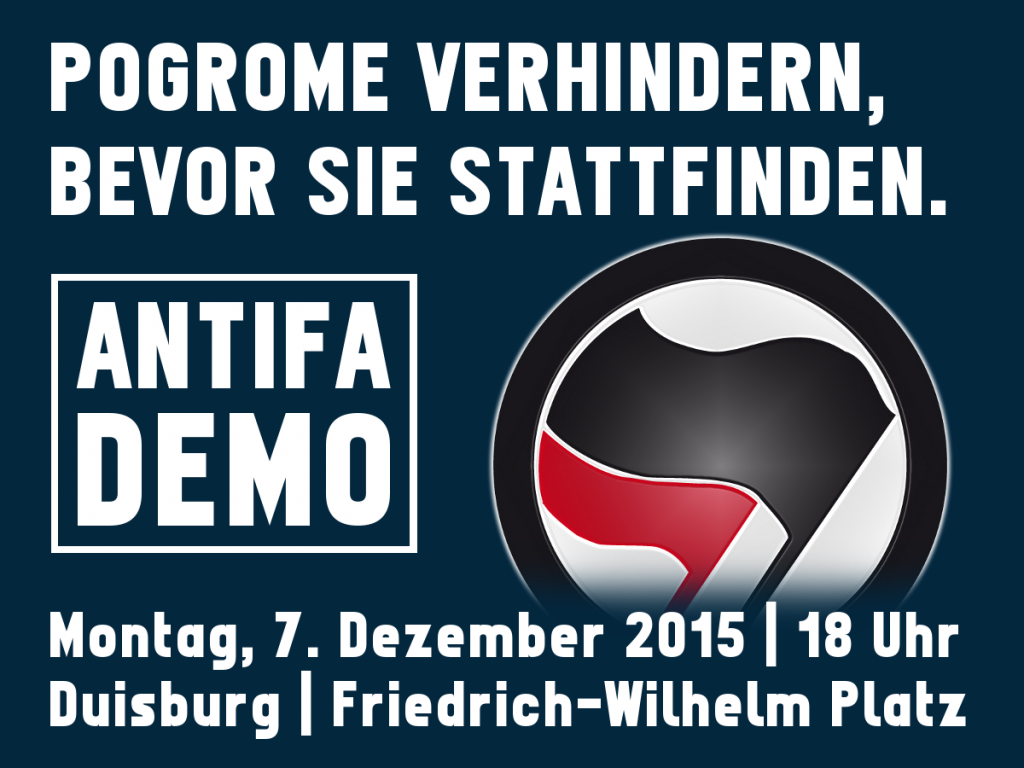 In ganz Deutschland finden seit Monaten verstärkt rassistische Mobilisierungen statt. Es kommt regelmäßig zu Demonstrationen und zu Angriffen auf Geflüchtete und deren Unterkünfte. Sowohl Neonazis, als auch andere Rassist*innen vernetzen sich, mobilisieren und greifen an. In verschiedenen Städten kam es schon zu pogromartigen Übergriffen. Der gesamte Diskurs über eine angebliche „Flüchtlingskrise“ in Deutschland ist rassistisch geprägt. Hochburg von rassistischer Mobilisierung in NRW ist wieder mal Duisburg.