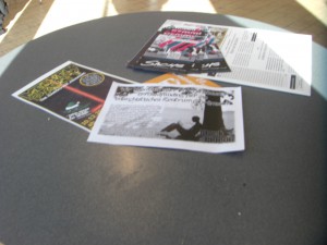 „Bücher statt Bomben – AZ Dortmund unterstützen! www.startnext.de/azentrumdo“ und „Mache was zählt: Tu was gegen IS und Bundeswehr!“