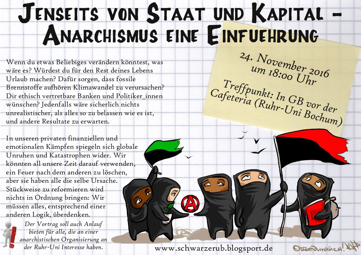 Der Vortrag soll auch Anlauf bieten für alle, die an einer anarchistischen Organisierung an der Ruhr-Uni Interesse haben.