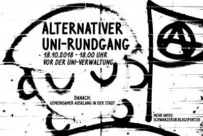 Beim alternativen Uni-Rundgang zeigen wir euch spannende Ecken des Campus und erzählen ältere und neuere Anekdoten aus der Geschichte antiautoritärer Bewegungen an der Uni. Außerdem verbinden wir die Geschichte der Uni mit der Geschichte der restlichen Welt, denn die Uni befindet sich nicht in einem Vakuum und auch dort spiegeln sich globale Unruhen und Katastrophen wider. Stationen sind coole Orte wie das politische Archiv oder der Frauen*raum, aber auch Einrichtungen, die viele Menschen eher unterdrücken als ihren Bedürfnissen zu dienen. Schlussendlich wird die Frage beantwortet: Kommt mensch nach 21.00 Uhr eigentlich irgendwie in die Unigebäude rein? Los geht’s am 18.10.2018 um 18.00 Uhr vor der Uni-Verwaltung. Nach dem Rundgang wollen wir den Abend noch gemeinsam in der Stadt ausklingen lassen.