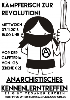 Das wirkt wie vereinzeltes Handeln, aber wir sind Teil einer globalen Bewegung, die sich Anarchismus nennt. Anarchist*innen glauben, dass Macht über Andere immer korrumpiert und jede*r, die*der herrscht, gezwungen ist vor allem ihre*seine Macht zu erhalten, daher organisieren wir uns ohne Anführer*innen. Außerdem lehnen wir Parteien und die Beteiligung an Wahlen ab, denn auch die Hierarchien und Zwänge in Parlamenten und Parteien korrumpieren und verhindern freiheitliche Veränderungen. Wir wollen uns auch den Staat und seinen Zwangsapparat nicht zu eigen machen, denn zu Selbstbestimmung können Menschen nicht gezwungen werden. Falls du mit uns an einer revolutionären Änderung der Welt arbeiten willst, komm zum anarchistischen Kennlerntreffen an der Ruhr-Uni am 07.11.2018 um 18.00 Uhr vor der Cafeteria von Gebäude GB.