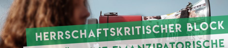 Mit dem Herrschaftskritischen Block wollen wir zeigen, dass verschiedene Kämpfe gegen Unterdrückung zusammen gedacht werden müssen. Diskriminierung von und Vorurteile gegenüber Menschen (auf Grund ihres Aussehens, ihrer Herkunft, ihres Geschlechts,…) gehören genauso wie die Diskriminierung auf Grund der Spezieszugehörigkeit nicht in eine emanzipatorische Bewegung. Unser Aktivismus sollte über Konsumkritik und eine vegane Lebensweise hinausgehen, daher stellen wir uns auch gegen Kapitalismus und seine Verwertungslogik. Der Herrschaftskritische Block wendet sich gegen alle Formen von Unterdrückung. Wir stehen für eine (queer-)feministische und antifaschistische Tierbefreiungsbewegung, die Diskriminierung nicht reproduziert sondern bekämpft und eigene Privilegien reflektiert.