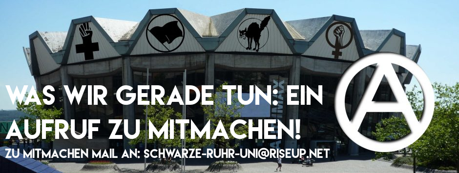 Wir würden uns sehr freuen, wenn Menschen in nächster Zeit zur Gruppe stoßen. Bei Interesse schreibt uns ein Mail an schwarze-ruhr-uni(at)riseup.net