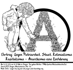 23.05 Siegen: Gegen Patriarchat, Staat, Kolonialismus Kapitalismus – Anarchismus eine Einführung um 18.00 Uhr – bei guten Wetter: FAU-Garten (Melanchthonstraße) oder bei schlechten Wetter das VEB Siegen (Marienborner Str. 16.).