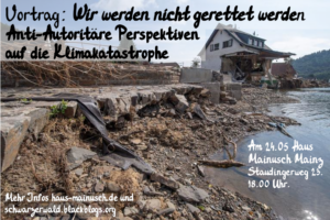 24.05 Mainz: Wir werden nicht gerettet werden – Anti-Autoritäre Perspektiven auf die Klimakatastrophe um 18.00 Uhr – Haus Mainusch (Staudingerweg 23).