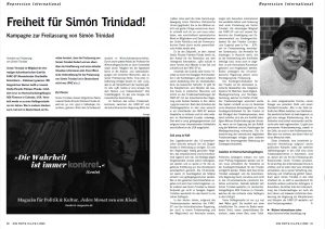 Wir übersetzen nun die Passagen, in den Andrés París Worte über die politischen Gefangenen und Simón Trinidad verliert: