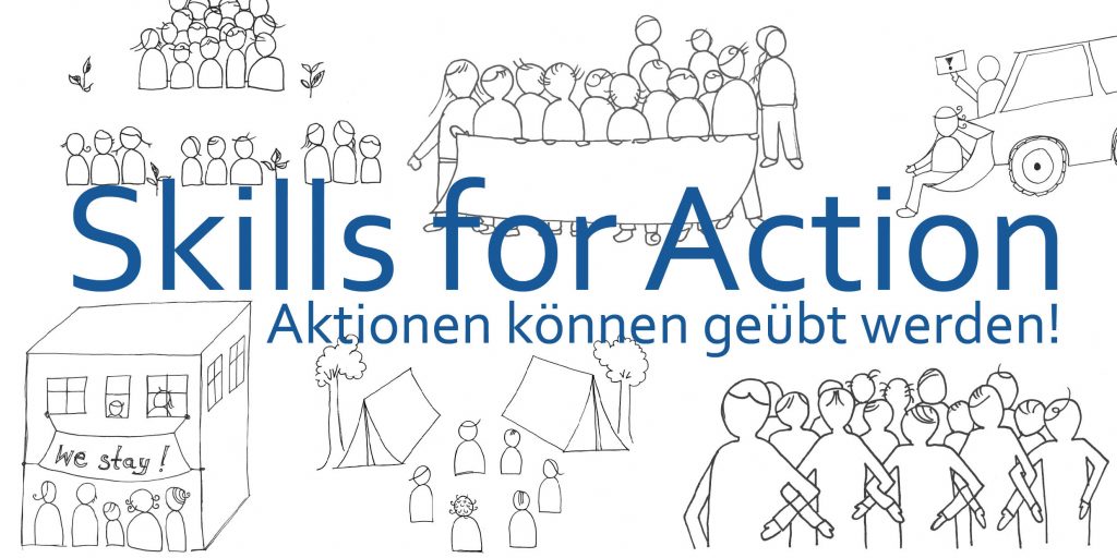 Wir sitzen in einer Sitzblockade vor einem Atomwaffenlager (einem Kohlekraftwerk, einer Nazi-Demonstration,…), Polizist*innen be­ginnen die Ersten von uns wegzutragen. Die Polizei versucht uns während einer Aktion gegen Gentechnik auf einem Maisfeld einzukesseln. In der Nähe der Europäischen Zentralbank, die wir blockieren möchten, stehen wir vor einer scheinbar unüber­windbaren Polizeikette… Für gelingende Aktionen – nicht nur aber vor allem auch für Aktionen des Zivilen Ungehorsams – benötigen wir gute Vorbereitung, Erfahrungsaustausch und Aktionstechniken, die erlernbar sind! Ein Raum, um dies zu ermöglichen, können Aktions­trainings sein. Dort können Aktionserfahrungen unter den Teilnehmenden ausgetauscht, Blockade- und andere Aktionstechniken praktisch geübt und schnelle Entscheidungsfindung in Stresssituationen ausprobiert werden. Als Aktivist*innen und Moderator*innen bieten wir Gruppen mit verschiedenem Erfahrungsgrad solche Aktionstrainings an. Darin moderieren wir einen Erfahrungsaustausch und geben Tipps zu verschiedenen Aktionstechniken. Das Training lebt insbesondere von Eurer Bereitschaft, Aktionserfahrungen miteinander zu teilen. Die Trainings sind darauf ausgerichtet, die Voraussetzungen zu schaffen, euch in Aktionen sicher zu fühlen, euch selbst zu schützen und entschlossen die vereinbarten Aktionsziele zu verfolgen. Je nach Bedarf, Erfahrungshintergrund der Gruppe oder nach Aktion auf die sich vorbereitet werden soll, können die Trainings unterschiedliche Inhalte haben. Falls du oder ihr ein Aktionstraining z.B. in Deutschland oder Österreich anbieten wollt und noch ein*e Trainer*in benötigt, informiert euch hier und schreibt uns unter: skillsforaction (at) immerda (punkt) ch Unseren PGP-Key gibt es in der Seitenleiste. Bitte beachtet: Wir sind ein selbstorganisiertes Netzwerk und bekommen sehr viele Anfragen, die wir nicht immer alle abdecken können. Auch schaffen wir es meist nicht, kurzfristig Trainings zu übernehmen. Meldet Euch daher am besten immer mindestens EINEN MONAT VOR EUREM GEWÜNSCHTEN TERMIN – und verzeiht uns, wenn wir nicht schnell antworten und Ihr uns ggf. wiederholt anschreiben müsst.