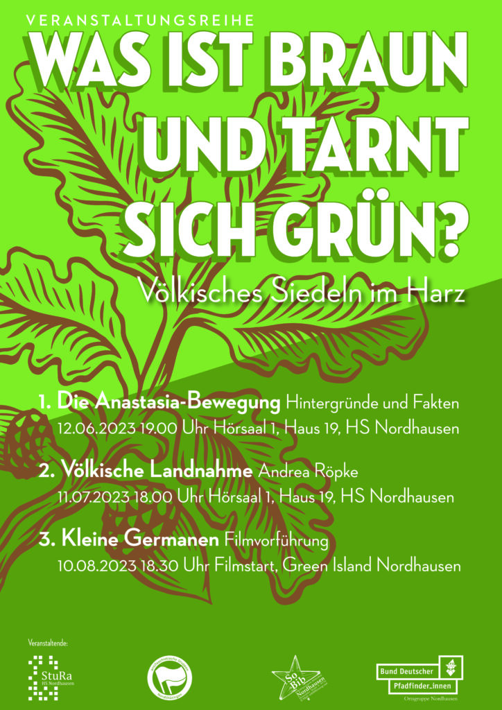 In einer kleinen Veranstaltungreihe in Nordhausen möchten wir mit euch diesen Fragen nachgehen, braun von grün unterscheiden lernen und aktiv werden. Kommt vorbei!