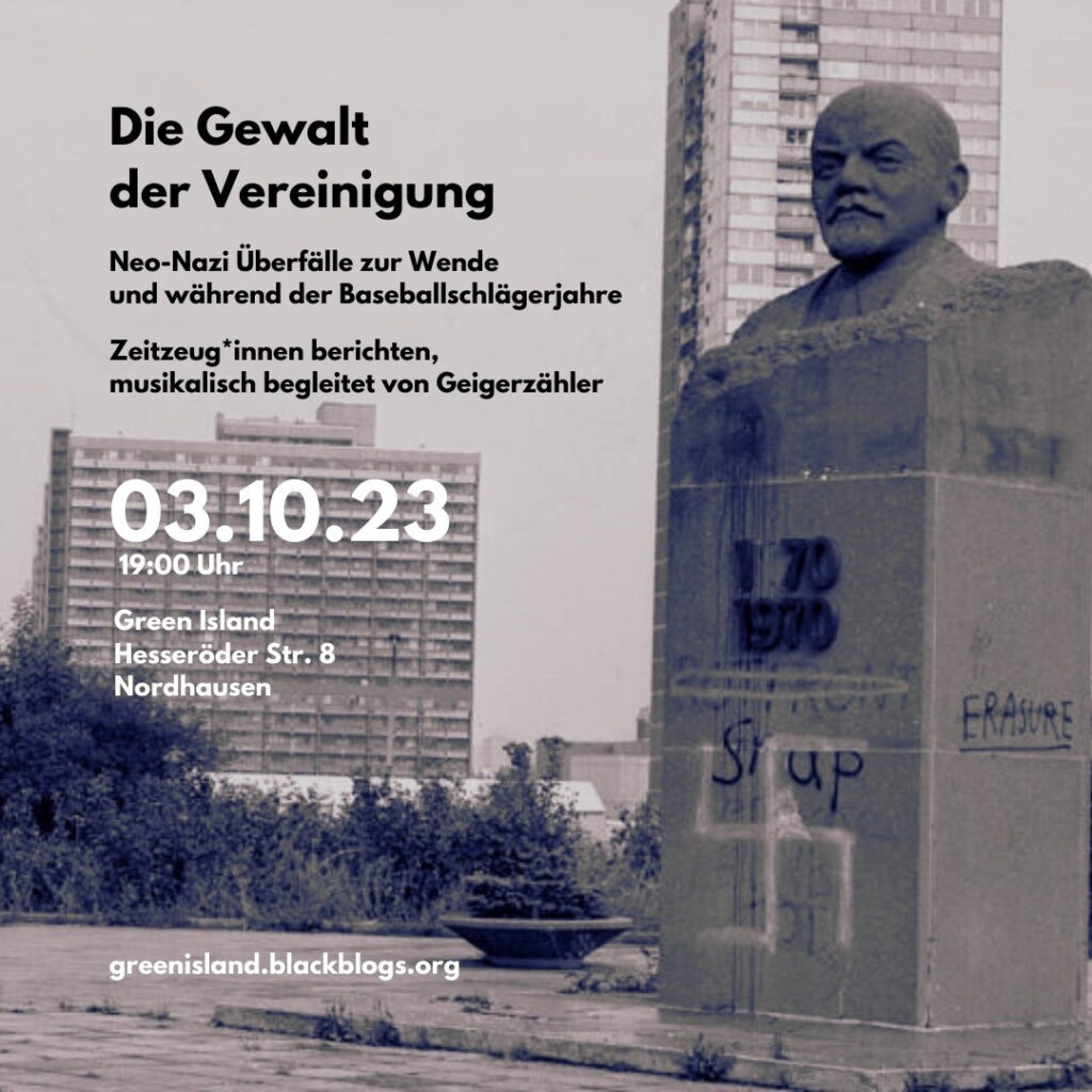 Am 2. und 3. Oktober 1990 feierten Millionen von Menschen in BRD und DDR die Vereinigung der beiden deutschen Staaten. Der 3. Oktober wurde zuvor zum Feiertag erklärt und wird als solcher bis heute begangen. In diesem „Einheitstaumel“ zogen am Abend des 2. Oktober 1990 bewaffnete Neonazis und Rechte los und überfielen gezielt Linke und besetzte Häuser sowie Migrantinnen und Vertragsarbeiterinnen und deren Wohnungen. Es grenzt an ein Wunder, dass die teils massiven Angriffe, von denen einige auch noch am 3. Oktober stattfanden, keine Todesopfer forderten. Während ein Großteil der Gesellschaft ausgelassen feierte, kämpften die Andersaussehenden und Andersdenkenden, vielfach alleingelassen von Gesellschaft und Polizei, um ihre Häuser – und mancherorts auch um ihr Leben.