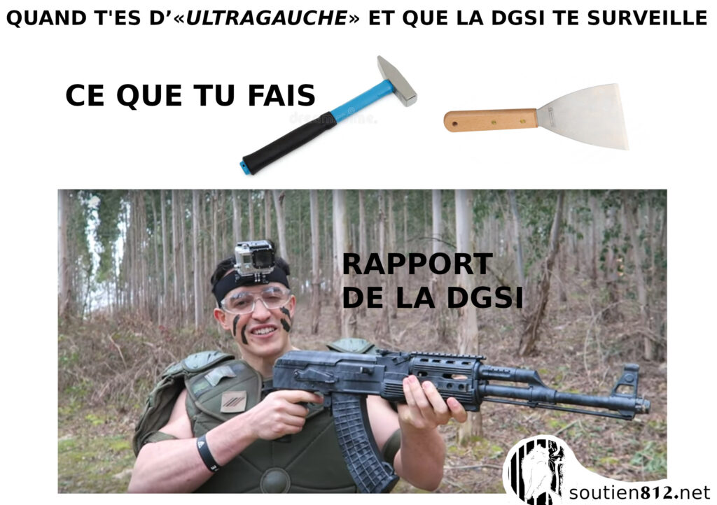 Nous avions déjà ironisé sur le fait qu’une « chouette team » puisse devenir, -passant le prisme d’un agent de la sécurité intérieure sous pression politique-, une « shot team ». Cette fois, nous avons d’un côté une sonorisation qui enregistre ce que Svink fait : « tapoter avec un marteau et une spatule dans un plat » (selon ses explications). Et de l’autre côté, un rapport de filature qui affirme entendre « des tirs d’airsoft en rafale ». Encore un PV faux qui en dit long sur la subjectivité des agents.