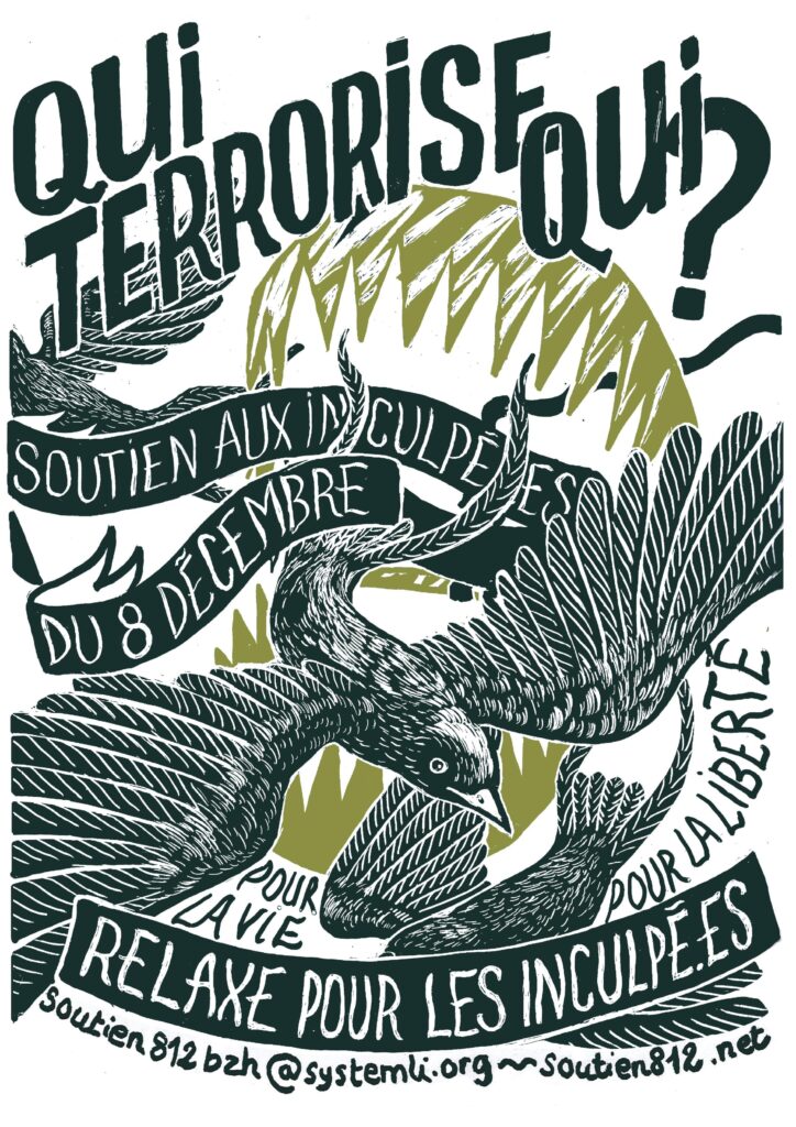 L’Actu des Oublié·es, « Qui terrorise qui ? L’Affaire du Huit Décembre« , deux épisodes et un hors série pour comprendre l’affaire et se solidariser avec les inculpé·es.