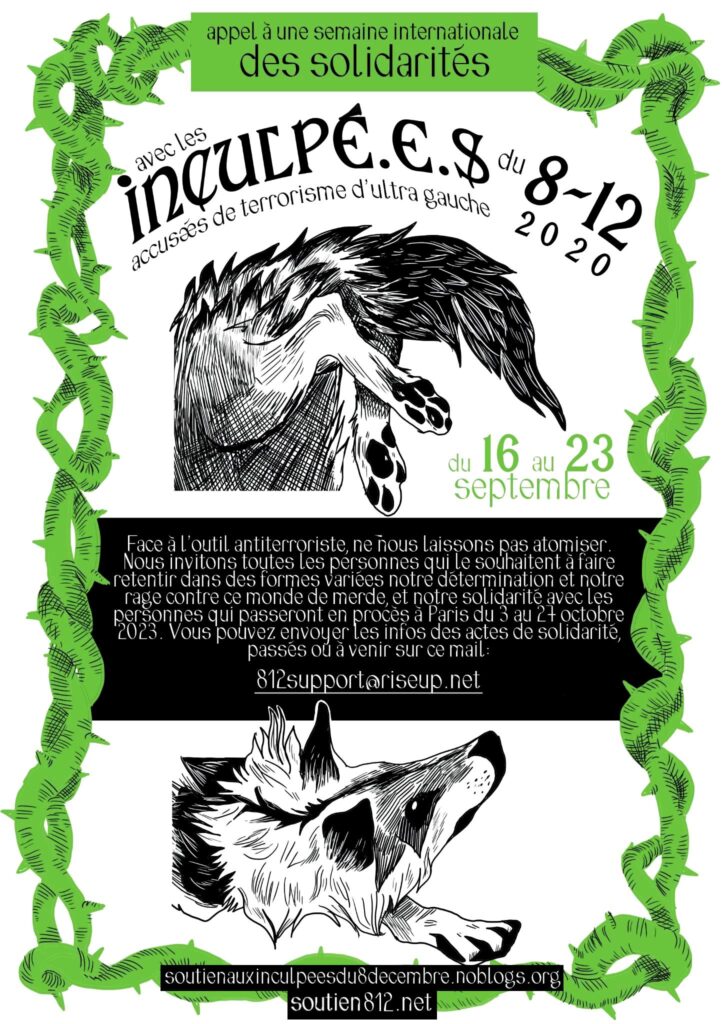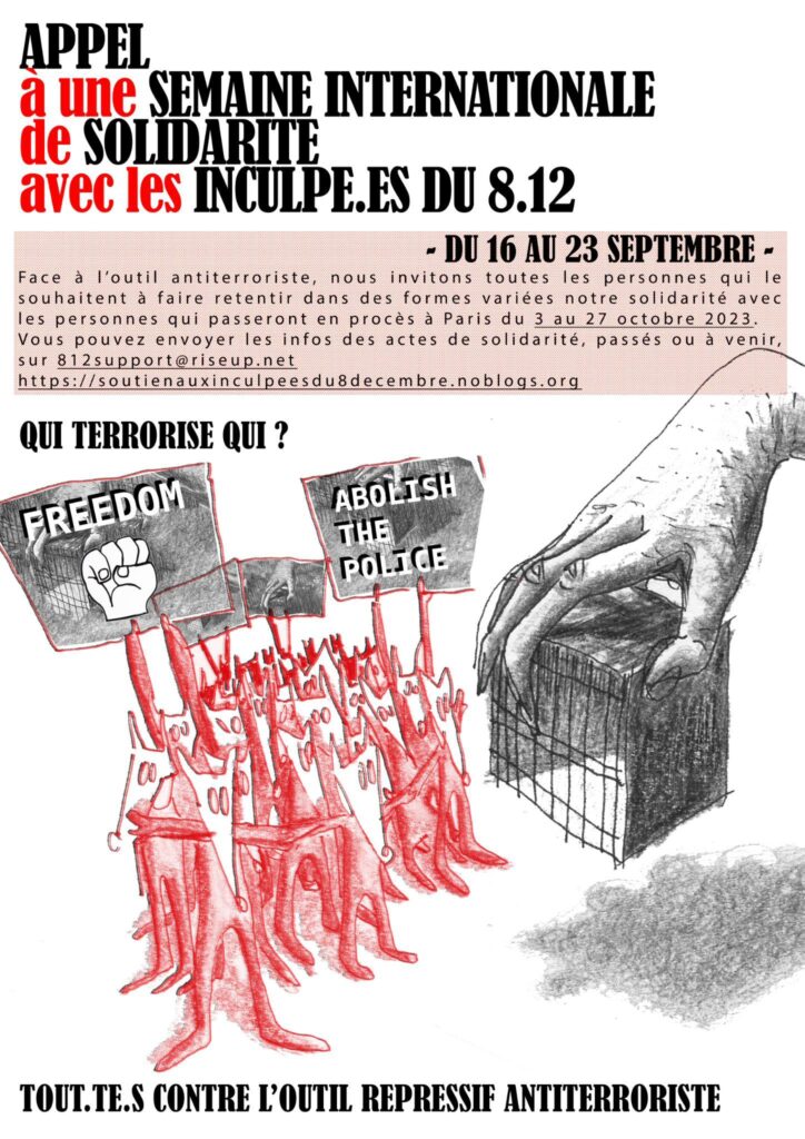Un texte d’appel à la semaine internationale des solidarités (du 16 au 23 septembre) avec les inculpé·es du 8/12