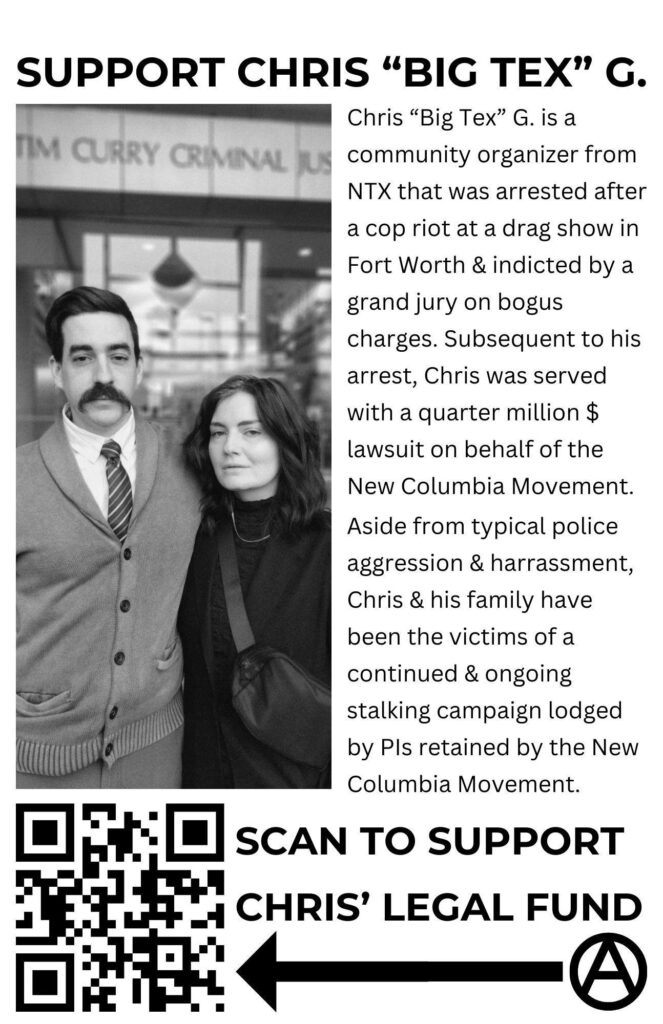 SmashbySmashwest benefit show tomorrow, March 16th, at Monkeywrench in Austin benefitting the legal defense funds of Chris “Big Tex” and Aeshna “Protest Mom”.
