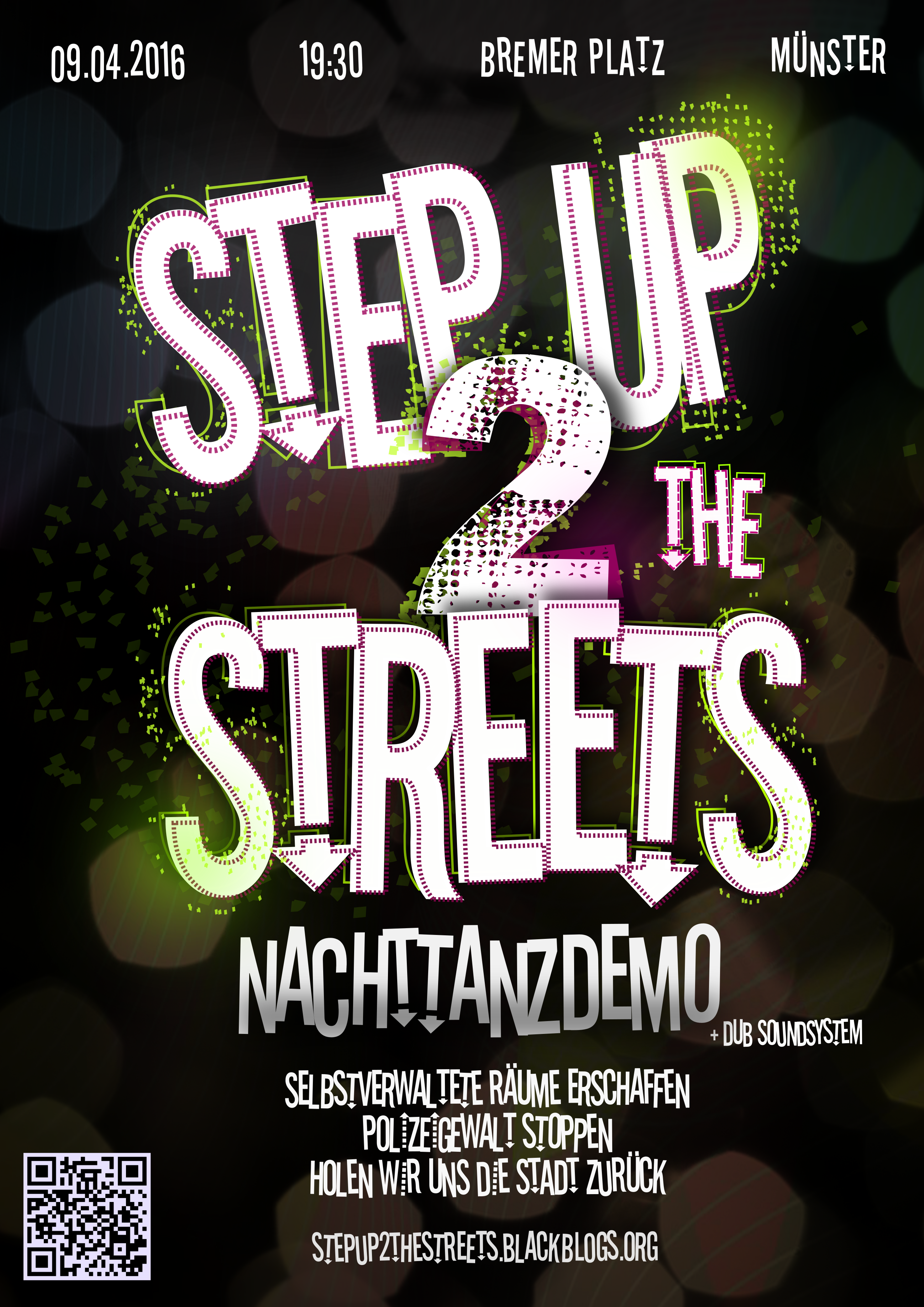 Da sich die münsteraner Presseorgane schwer tun eine ausgewogene Berichterstattung abzuliefern und stattdessen der Polizei nachplappern ist es notwendig, dass wir uns zu der Demonstration ‚Step up 2 the streets- Holen wir uns die Stadt zurück!‘ und den Geschehnissen danach äußern.