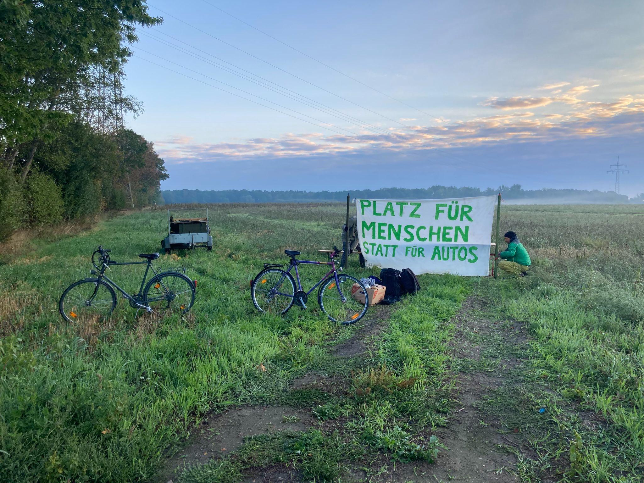 Stadtverwaltung und Polizei rückten am heutigen Morgen an und räumten die kleine Spontanversammlung nach kurzer Zeit gewaltsam weg. Seitdem wird das Gelände, welches – wie geschildert – immer noch formal von einem Landwirt gepachtet wird, von der Polizei bewacht. Kritik an VW wird mit Staatsgewalt verdrängt. Die Verkehrswende-Aktiven harren zurzeit auf einer Ersatzfläche aus, die allerdings nur an einer Autostraße liegt, also von Fußgänger*innen kaum erreichbar ist. Sie warten dort auf die Gerichtsentscheidung.