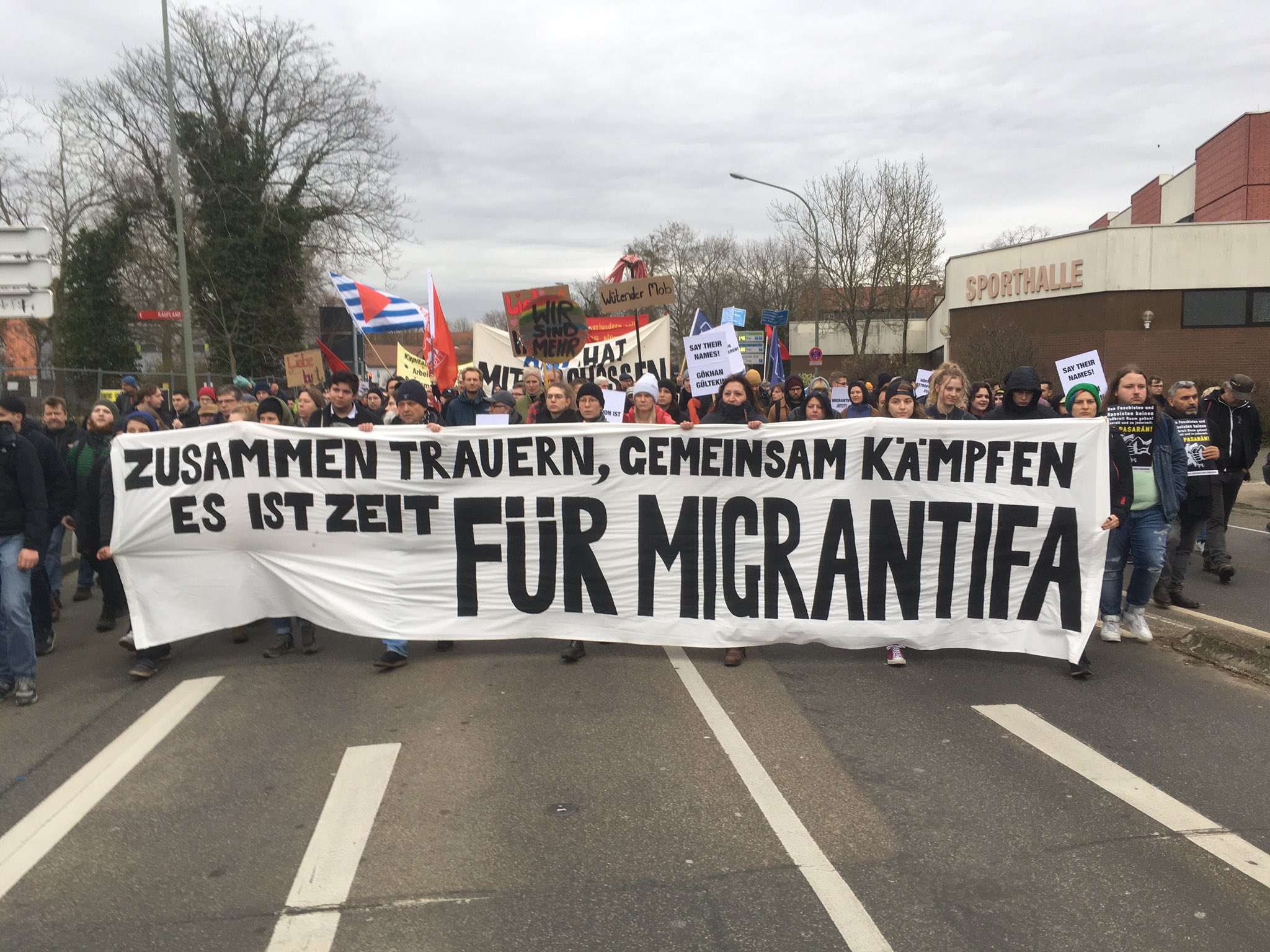 Am Samstag, den 22.2.2020 fand in Hanau eine bundesweite Solidaritäts- und Erinnerungsdemo für die Opfer und Hinterbliebenen des dortigen Terroranschlag statt. Es nahmen ca. 6.000 Menschen teil.